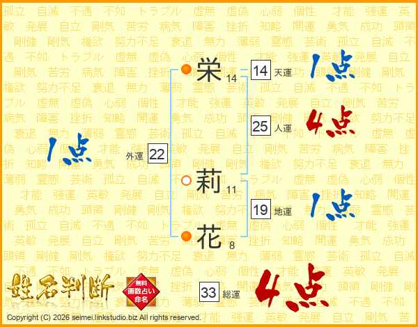 栄(14画) 莉(11画)花(8画)