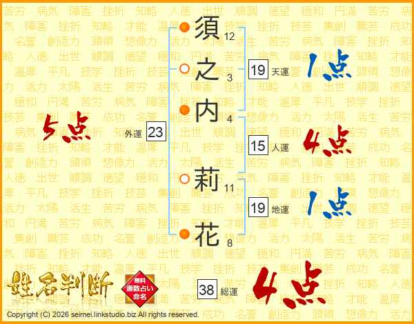 須之内莉花さんの総運は38画の4点!