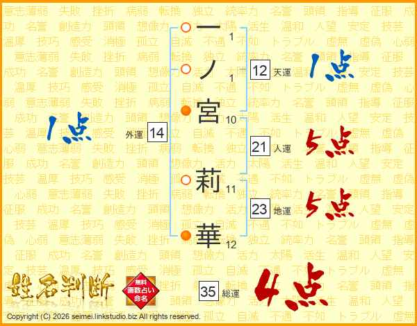 一ノ宮莉華さんの総運は35画の4点!