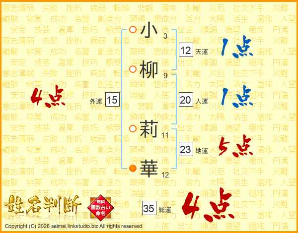 小柳莉華さんの総運は35画の4点!
