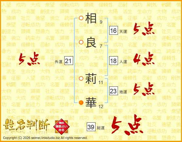 相(9画)良(7画) 莉(11画)華(12画)