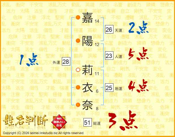 嘉陽莉衣奈さんの総運は51画の3点!