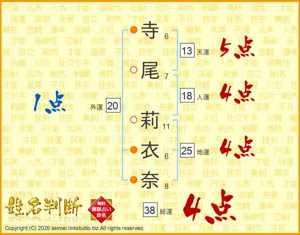 寺尾莉衣奈さんの総運は38画の4点!