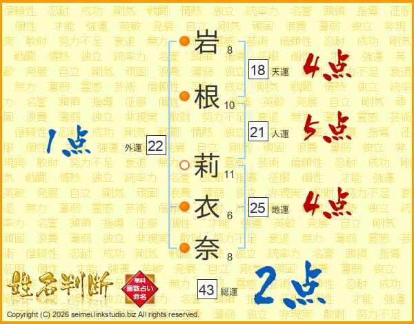 岩根莉衣奈さんの人運は21画の5点!