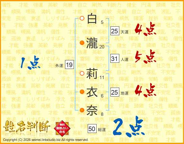 白瀧莉衣奈さんの人運は31画の5点!