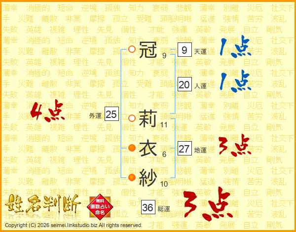 冠莉衣紗さんの総運は36画の3点!