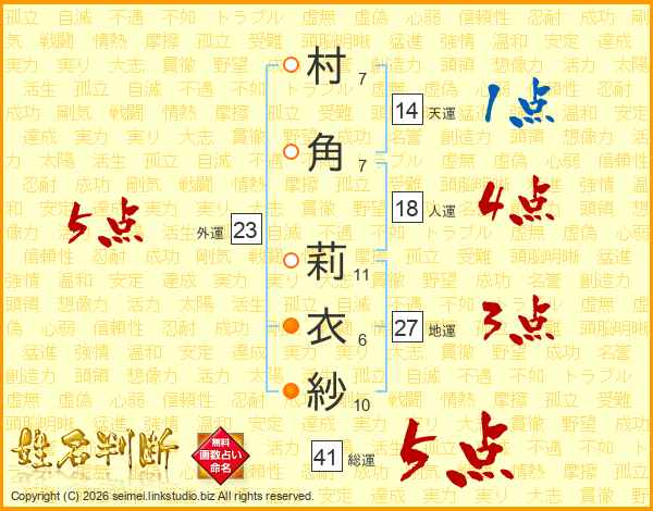 村角莉衣紗さんの総運は41画の5点!