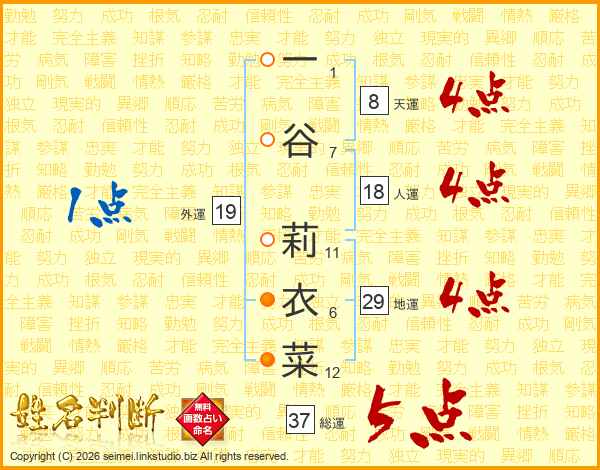 一谷莉衣菜さんの総運は37画の5点!