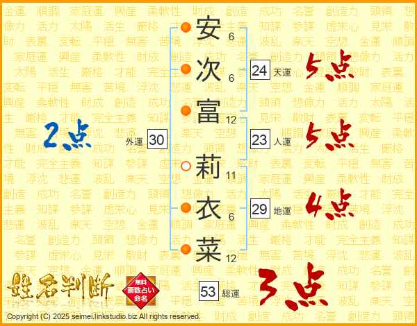 安次富莉衣菜さんの総運は53画の3点!