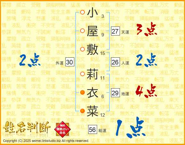 小屋敷莉衣菜さんの総運は56画の1点!