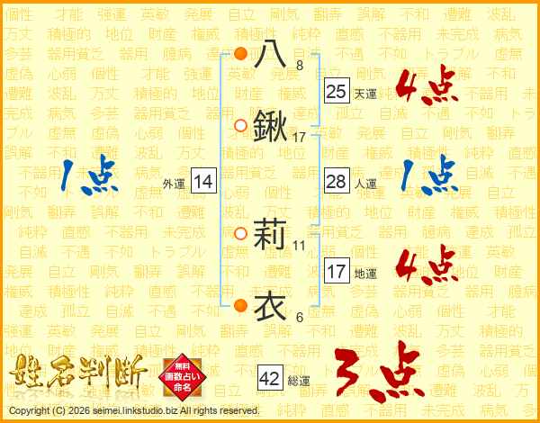 八鍬莉衣さんの天運は25画の4点!