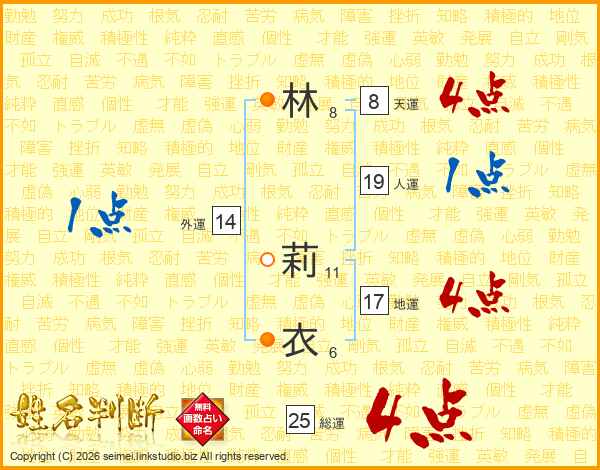 林莉衣さんの総運は25画の4点!