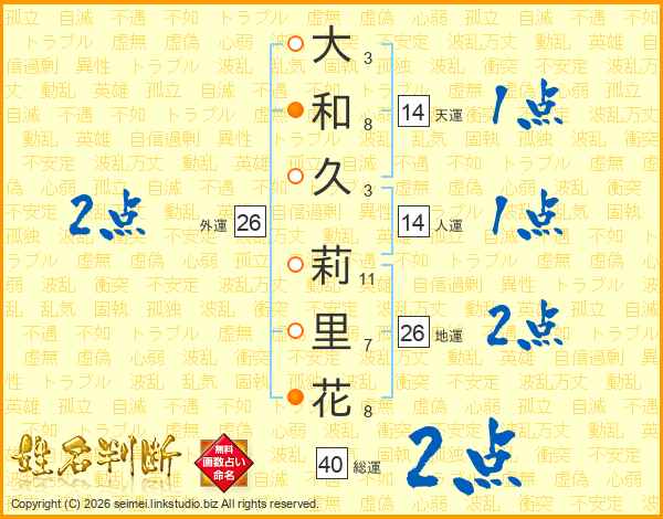 大和久莉里花さんの総運は40画の2点!
