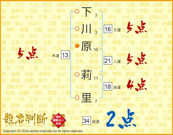下(3画)川(3画)原(10画) 莉(11画)里(7画)
