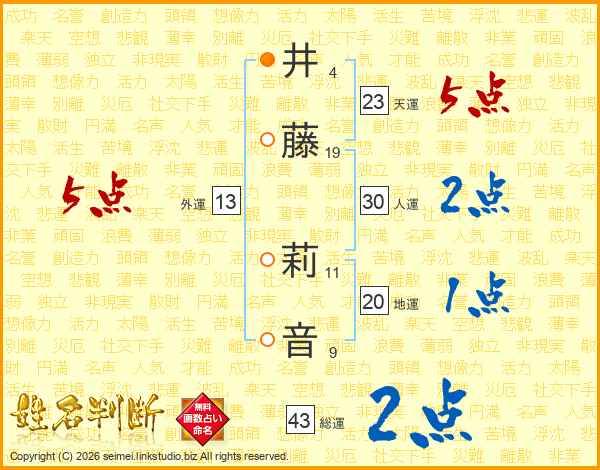 井藤莉音さんの天運は23画の5点!