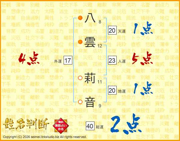 八雲莉音さんの総運は40画の2点!