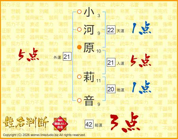 小河原莉音さんの人運は21画の5点!