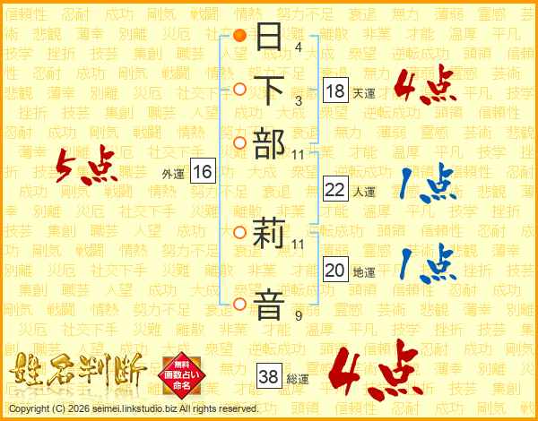日下部莉音さんの総運は38画の4点!