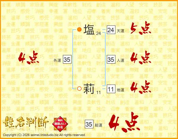 塩莉さんの外運は35画の4点!