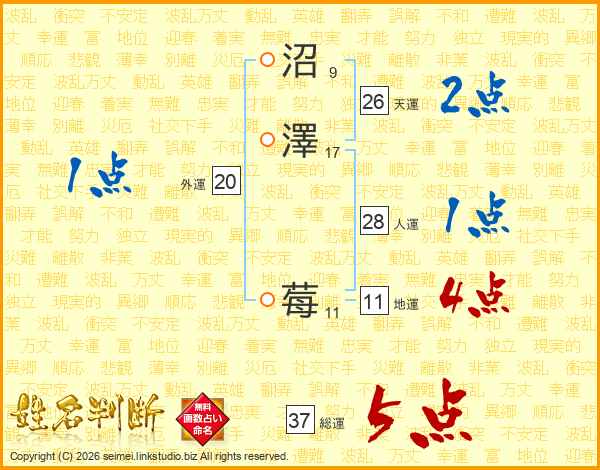 沼澤莓さんの天運は26画の2点!