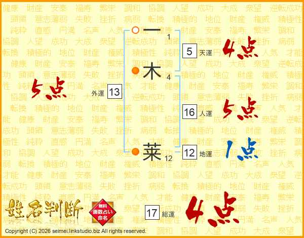 一木莱さんの総運は17画の4点!