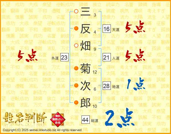 三(3画)反(4画)畑(9画) 菊(12画)次(6画)郎(10画)