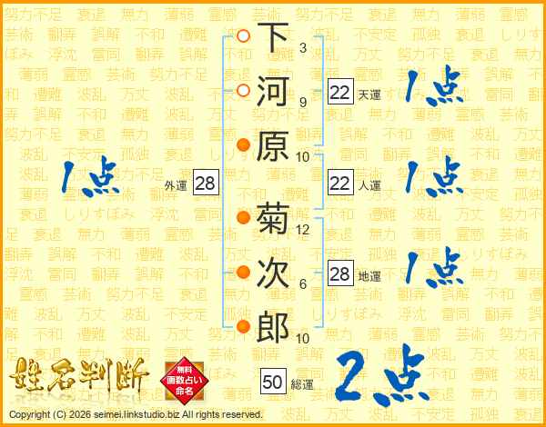 下河原菊次郎さんの人運は22画の1点!