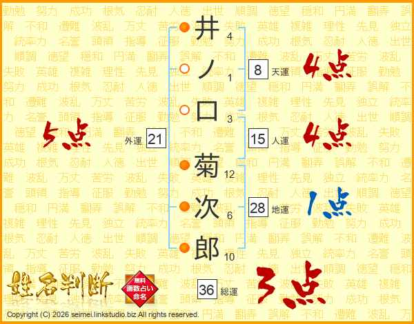 井ノ口菊次郎さんの外運は21画の5点!