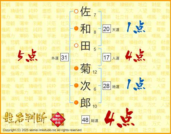 佐(7画)和(8画)田(5画) 菊(12画)次(6画)郎(10画)