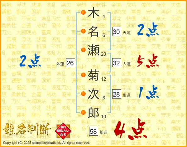 木名瀬菊次郎さんの総運は58画の4点!