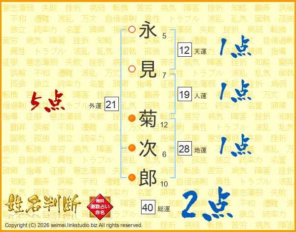 永見菊次郎さんの総運は40画の2点!