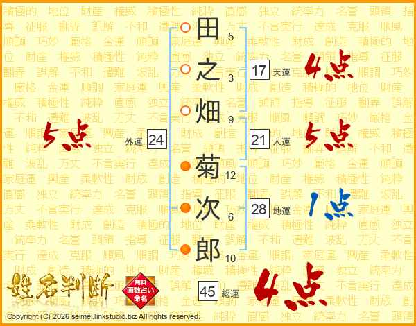 田之畑菊次郎さんの総運は45画の4点!