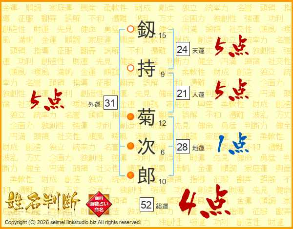 釼持菊次郎さんの総運は52画の4点!