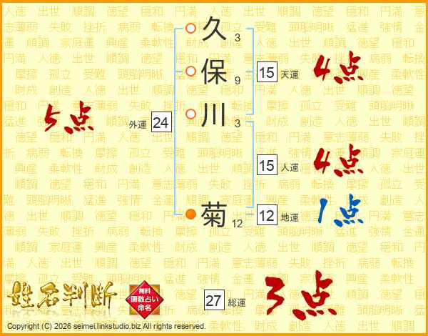 久保川菊さんの天運は15画の4点!