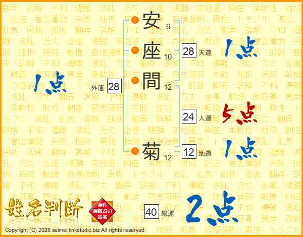 安座間菊さんの総運は40画の2点!