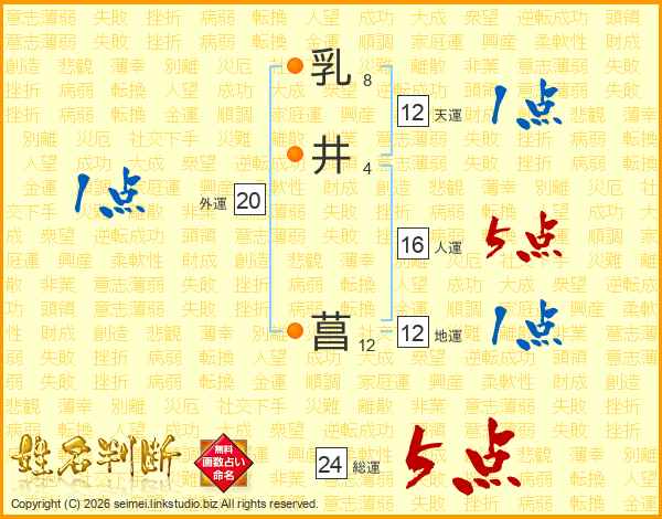 乳井菖さんの総運は24画の5点!