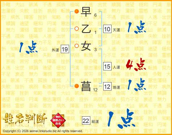早乙女菖さんの総運は22画の1点!