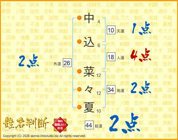 中込菜々夏さんの総運は44画の2点!