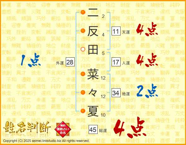 二反田菜々夏さんの総運は45画の4点!