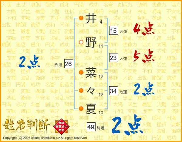 井野菜々夏さんの総運は49画の2点!