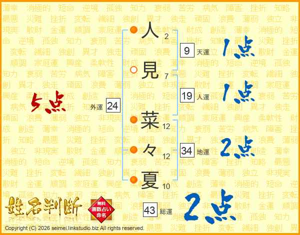 人見菜々夏さんの外運は24画の5点!