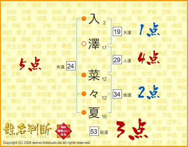 入澤菜々夏さんの外運は24画の5点!
