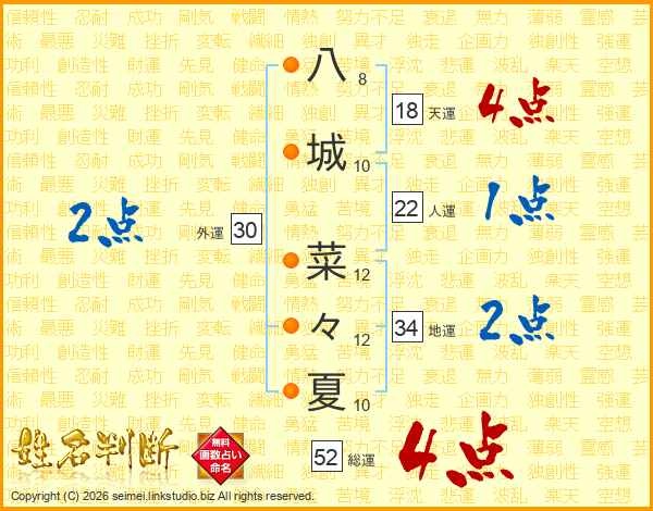八城菜々夏さんの総運は52画の4点!