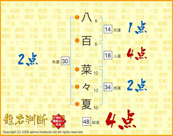 八百菜々夏さんの総運は48画の4点!