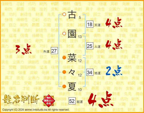 古園菜々夏さんの総運は52画の4点!