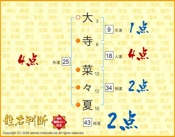 大寺菜々夏さんの総運は43画の2点!