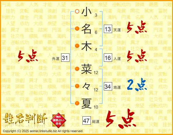 小名木菜々夏さんの外運は31画の5点!