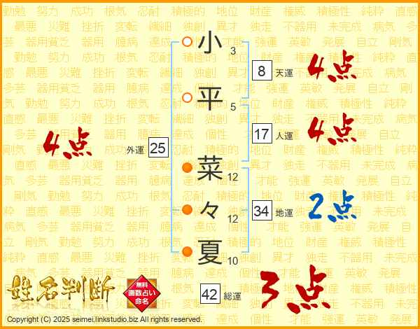 小平菜々夏さんの人運は17画の4点!
