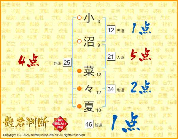 小沼菜々夏さんの総運は46画の1点!