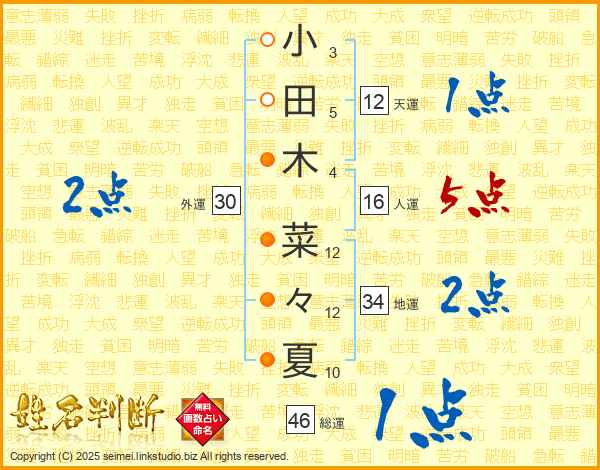 小田木菜々夏さんの総運は46画の1点!